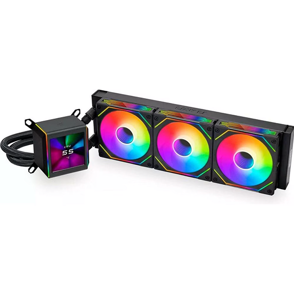 Questo sistema di raffreddamento a liquido dispone di un display LCD da 480x480 pixel sul waterblock e di tre ventole ARGB da 120 mm sul dissipatore.