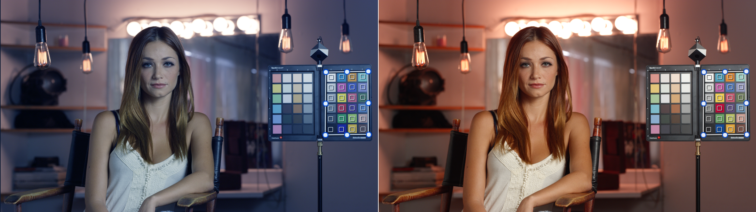 Un metodo estremamente preciso ed efficiente per ottenere un ottimo bilanciamento dei colori è quello di utilizzare una Color Match Card in fase di ripresa. Si tratta di un cartello con una serie di colori standard che va posto sul set in modo che sia illuminato come il soggetto e ben visibile. Una volta ripresi anche solo per pochi fotogrammi, la Color Match Card può essere rimossa dall'inquadratura.