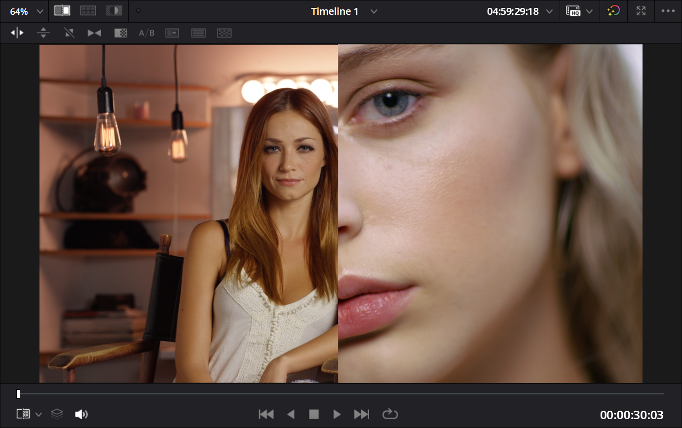 - Questa modalità mostra la clip selezionata accanto a quelle confinanti sulla timeline.