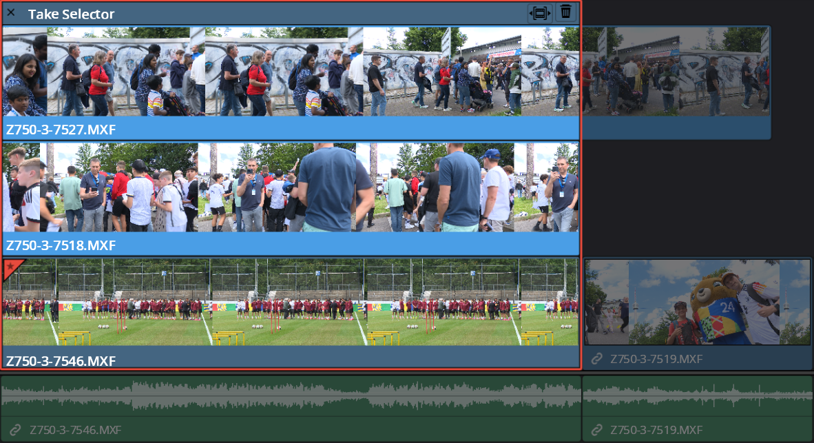 Può essere utile confrontare diversi take, ad esempio diverse versioni di una stessa scena, per capire quale è più adatto al nostro montaggio. In DaVinci Resolve la funzione Take Selector serve proprio a questo.