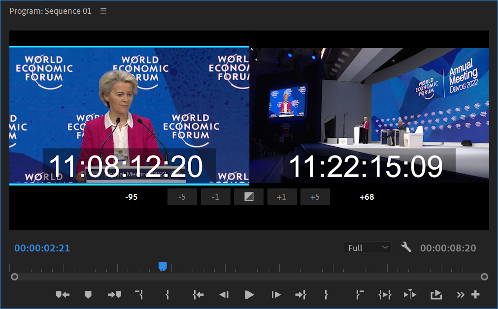 Sotto alle due immagini c'è un valore che indica di quanti fotogrammi è stato spostato il taglio. Per uscire dalla modalità di Trim Edit è sufficiente cliccare in un punto vuoto della sequenza.